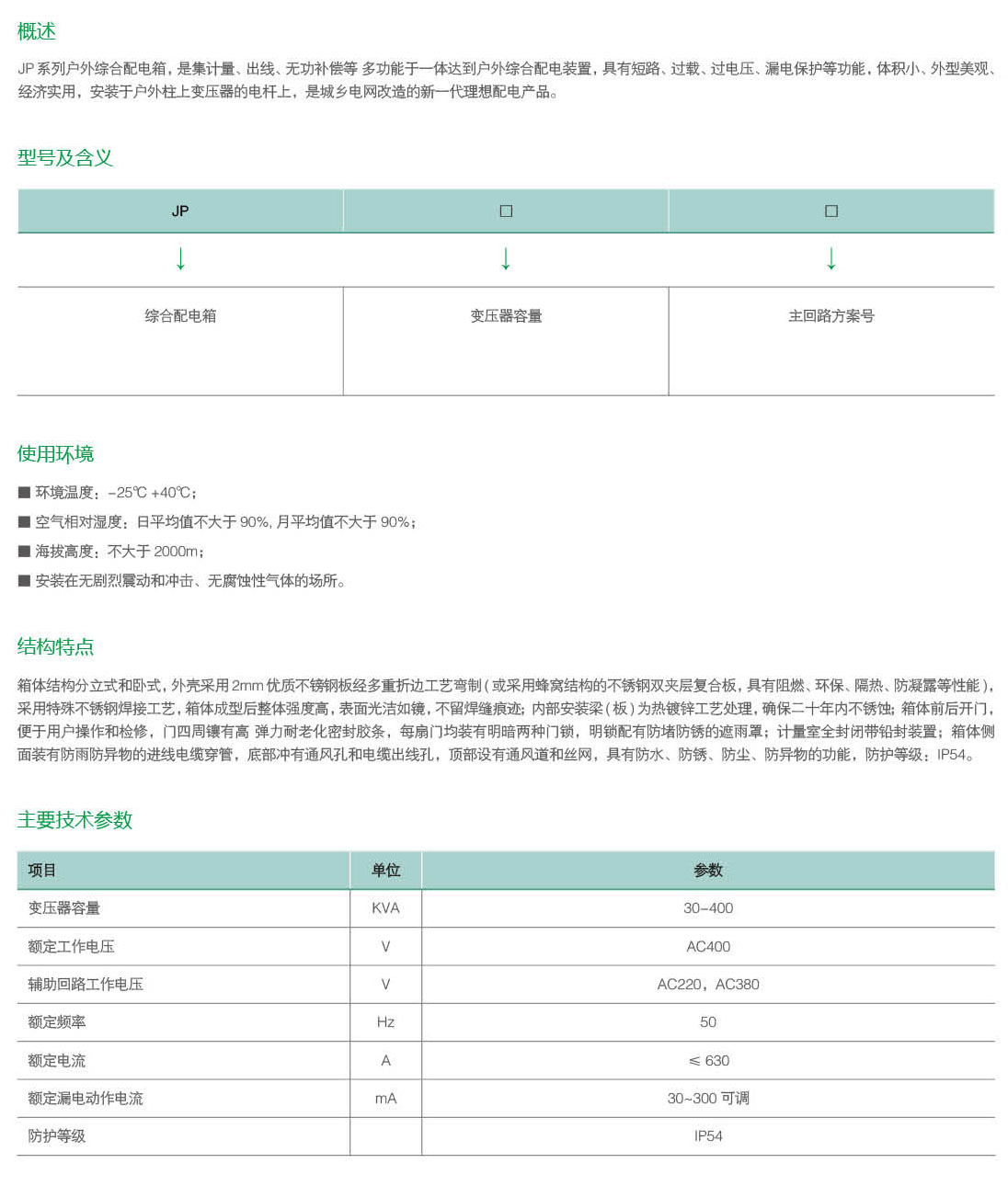 JP系列綜合配電箱(補(bǔ)償控制終端照明)