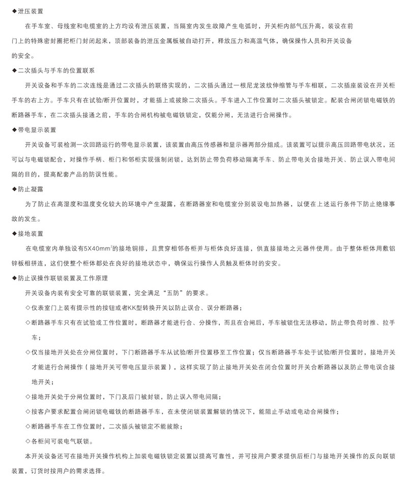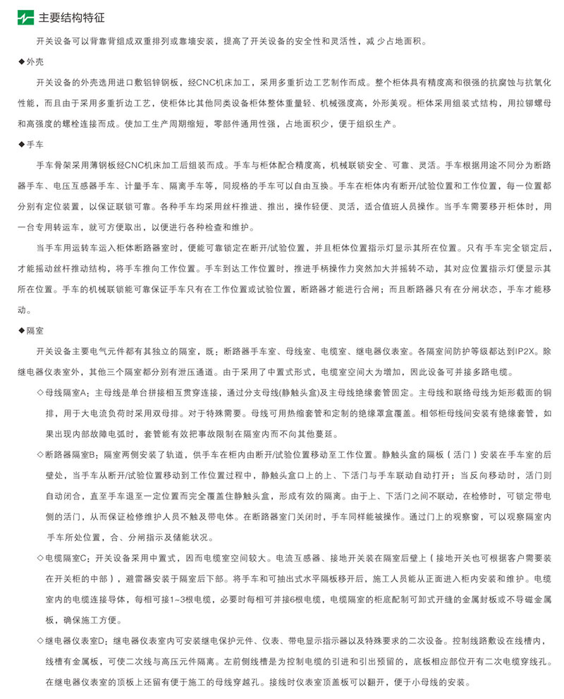 本公司生產(chǎn)銷售的產(chǎn)品有箱式變電站、KYN61-40.5、KYN28A-24、XLM系列充氣式(全密封)環(huán)網(wǎng)柜、GTXGN-12系統(tǒng)智能固體絕緣柜,GGJ、GGD、GCS、GCK、MNS、XL-12、GGD、PZ30等低壓開關(guān)柜。變壓器、真空斷路器、負荷開關(guān)、隔離開關(guān)、SF6斷路器等高壓元件多年來,持續(xù)為冶金、船舶、航天電力、礦山、以及智能化大樓、高層建筑、醫(yī)院、各大院校等行業(yè)提供高質(zhì)量產(chǎn)品及完善的售后服務(wù)