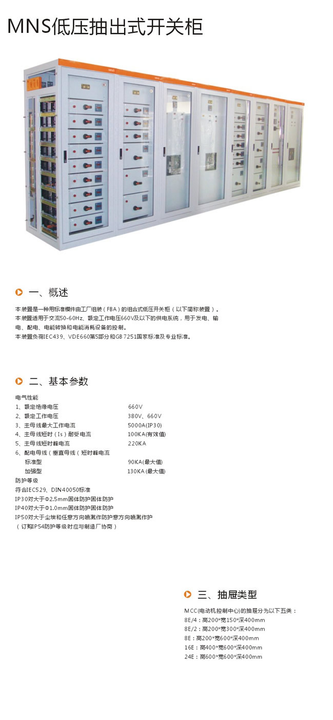 MNS低壓抽出式開關(guān)柜